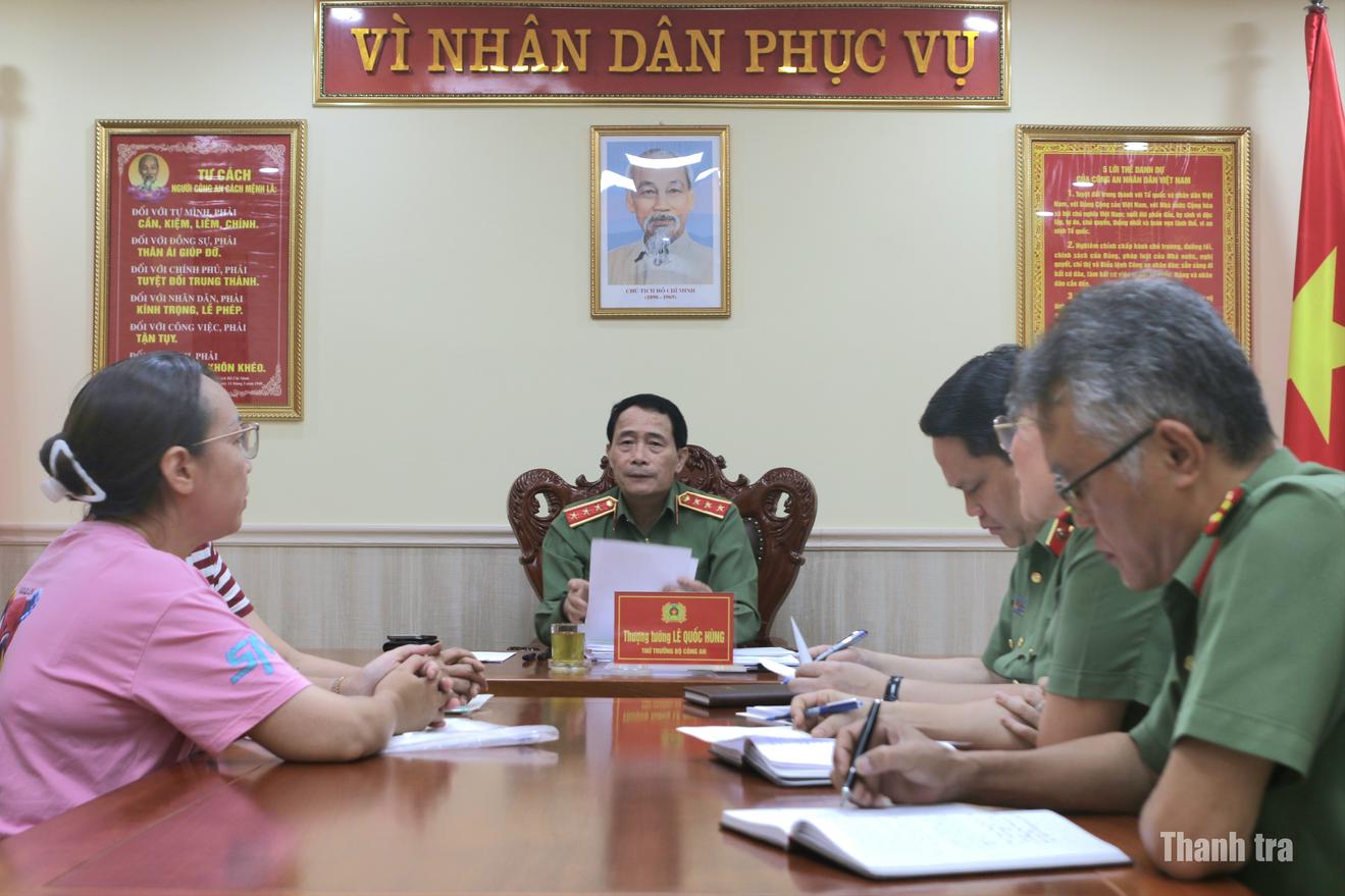 Lãnh đạo Thanh tra Bộ Công an phục vụ lãnh đạo Bộ Công an tiếp công dân định kỳ hàng tháng 7/2025. Ảnh: Hoàng Nam