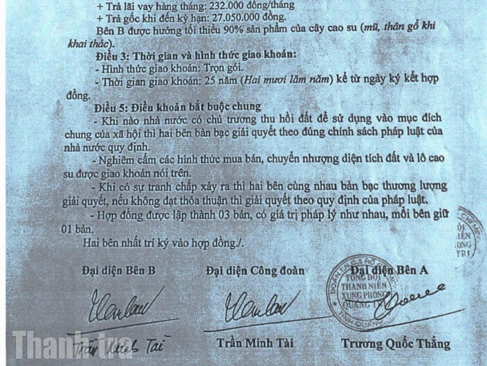 Một hợp đồng giao khoán cho chính cán bộ Tổng đội Thanh niên xung phong trồng cao su và khai thác riêng. Ảnh: Minh Tân