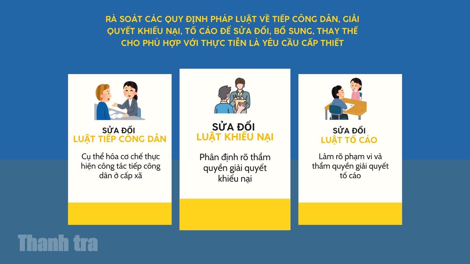 Bên cạnh những kết quả đã đạt được, trong quy định pháp luật và thực tiễn thực thi nhiệm vụ tiếp công dân, giải quyết khiếu nại, tố cáo hiện vẫn còn không ít khó khăn, vướng mắc. Do đó, rà soát các quy định pháp luật về tổ chức bộ máy chính quyền cơ sở, pháp luật về tiếp công dân, giải quyết khiếu nại, tố cáo để sửa đổi, bổ sung, thay thế cho phù hợp với thực tiễn là yêu cầu cấp thiết.