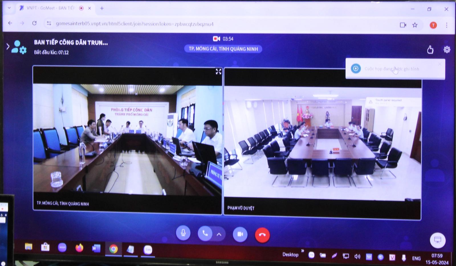 Trong ngày đầu tiên kết nối trực tuyến Ban TCD Trung ương và lãnh đạo TP Móng Cái đã cùng tiếp 2 vụ việc. Ảnh: VT