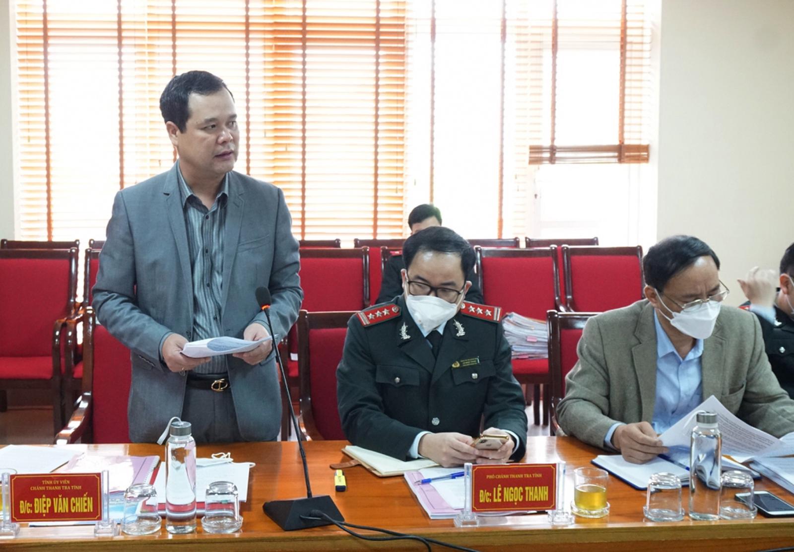 Chánh Thanh tra tỉnh Quảng Ninh Điệp Văn Chiến báo cáo tại cuộc giám sát. Ảnh: TTTT