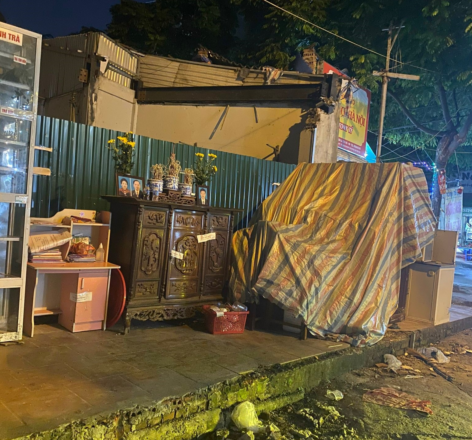 Bàn thờ bố mẹ chồng và chồng của bà Nguyệt phơi gió sương trên vỉa hè trước ngôi nhà bị cưỡng chế từ 04/10/2023 đến nay