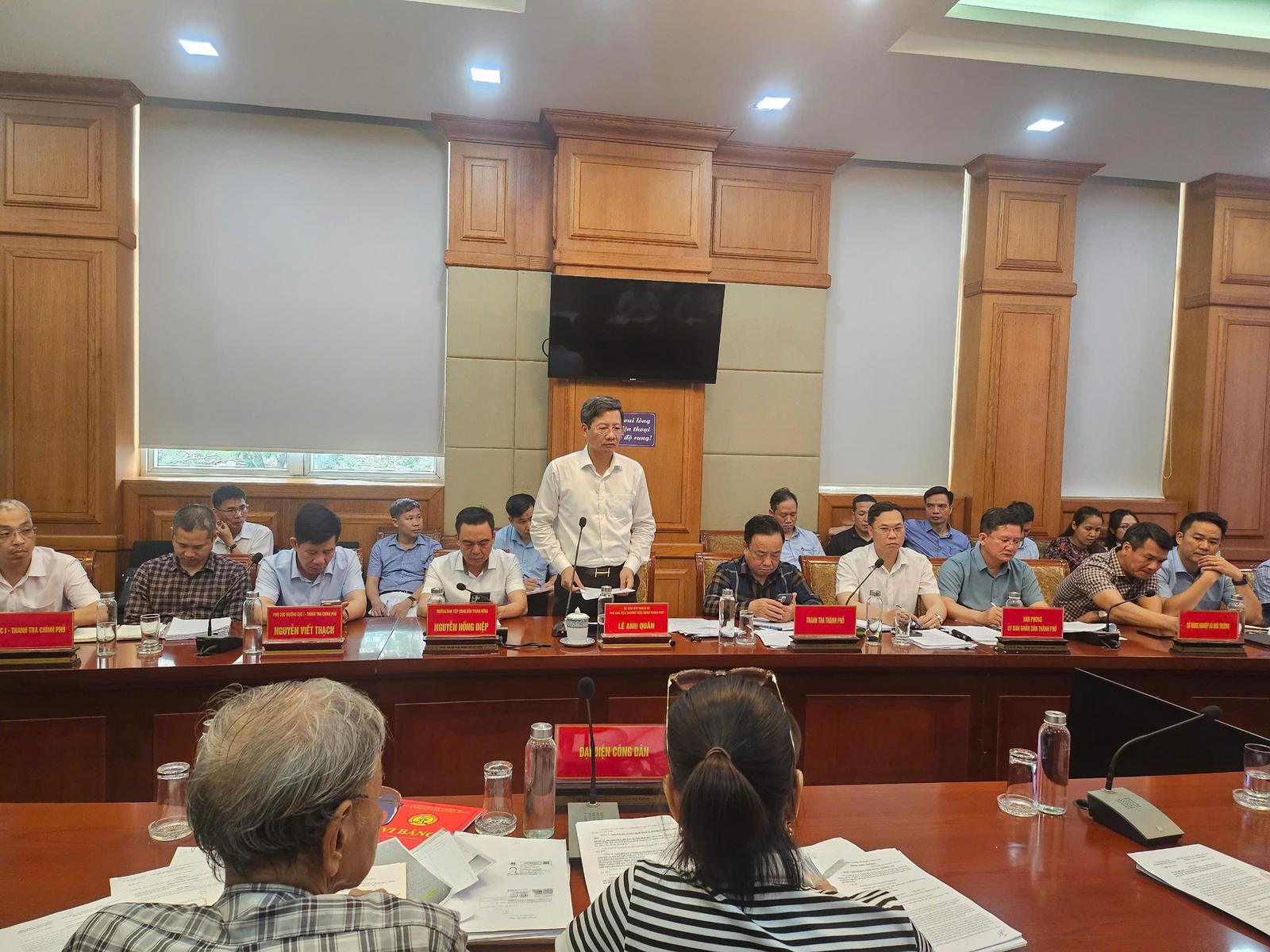 Phó Chủ tịch Thường trực UBND thành phố Lê Anh Quân và Tổ giúp việc số 3 của Thanh tra Chính phủ làm việc với ông Nguyễn Đức Lý. Ảnh: KT