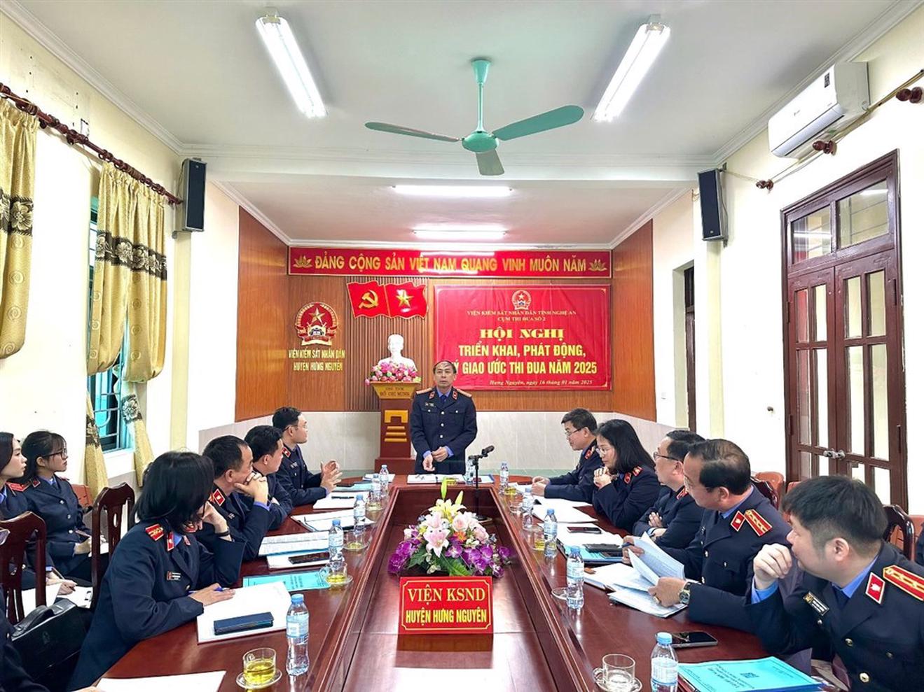Hội nghị triển khai phát động ký giao ước thi đua năm 2025 của Cụm thi đua số 2 Viện KSND tỉnh Nghệ An. Ảnh Viện KSND Nghệ An cung cấp