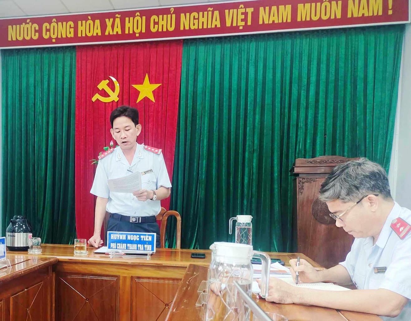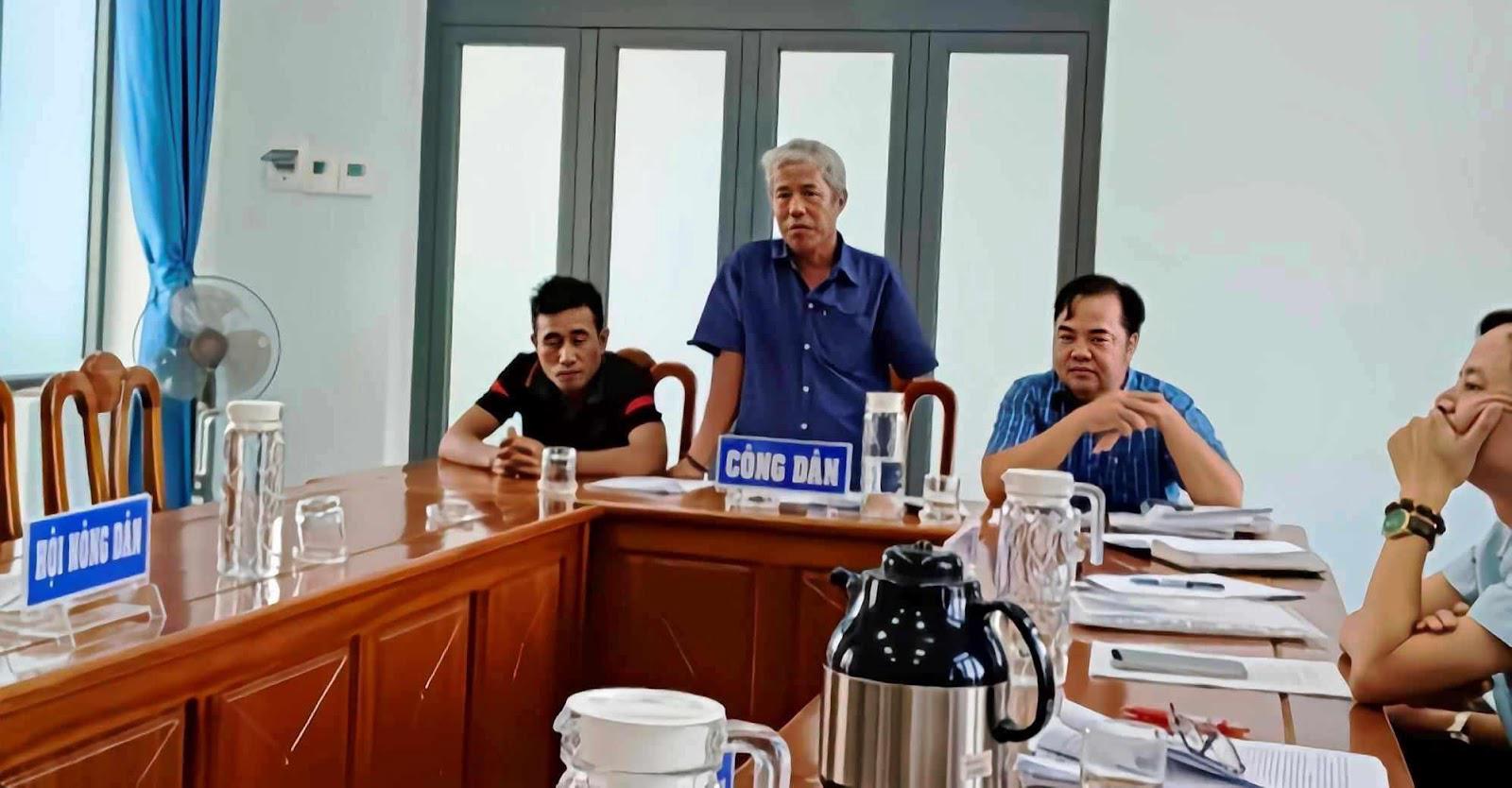 Phó Chánh Thanh tra tỉnh Quảng Nam Huỳnh Ngọc Tiên chủ trì buổi đối thoại với ông Nguyễn Tấn Đây chiều ngày 25/6. Ảnh: Thanh Nhung