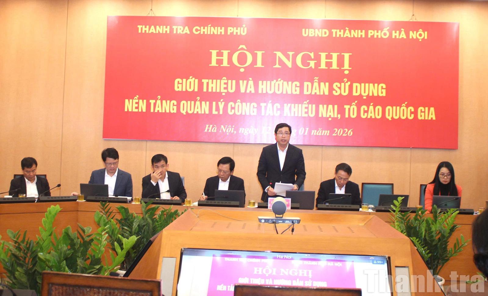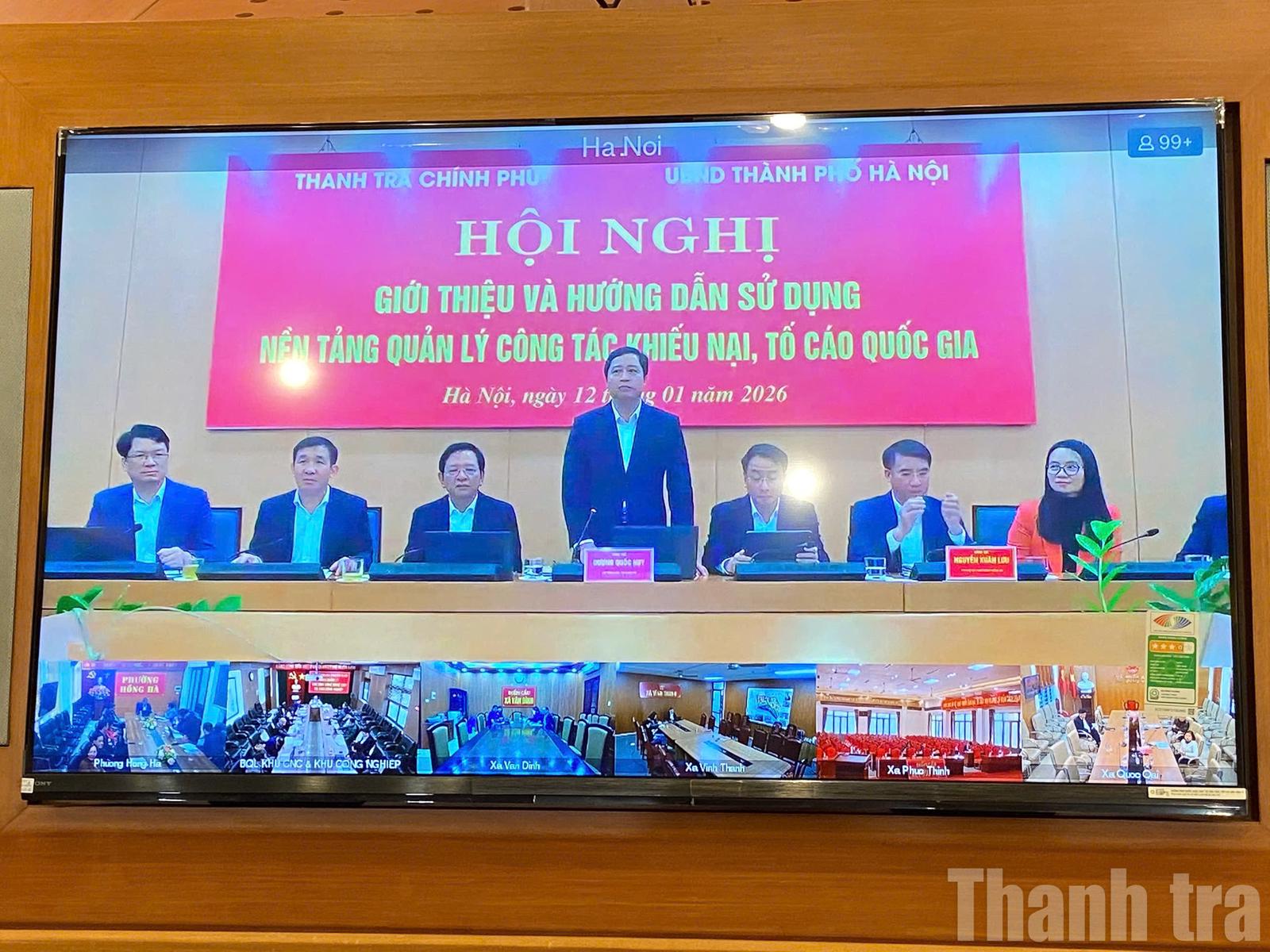 (Thanh tra) - Ngày 12/1, Thanh tra Chính phủ phối hợp với UBND thành phố Hà Nội tổ chức Hội nghị giới thiệu và hướng dẫn sử dụng nền tảng quản lý công tác khiếu nại, tố cáo quốc gia.