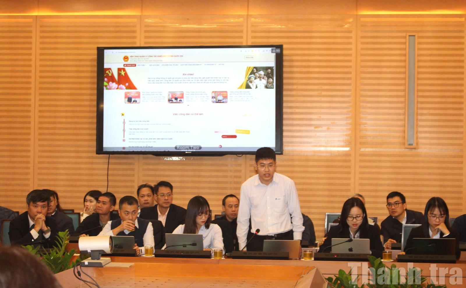 Tại hội nghị, đại diện Tập đoàn VNPT và đại diện tổ kỹ thuật của Thanh tra Chính phủ đã trực tiếp giới thiệu, hướng dẫn chi tiết các chức năng của nền tảng. Ảnh: PH