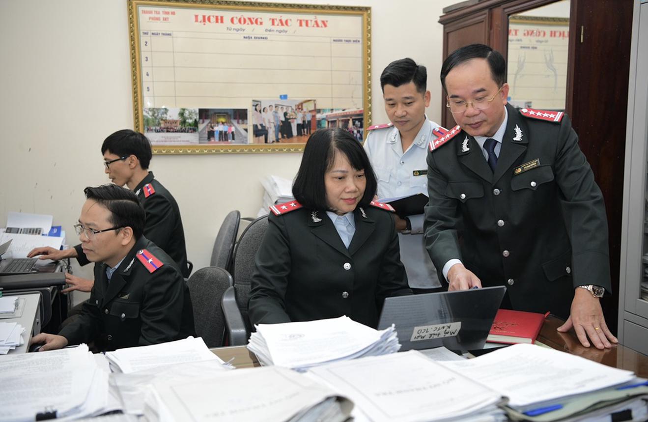 Đồng chí Vũ Gia Long, Chánh Thanh tra tỉnh Ninh Bình trao đổi chuyên môn cùng các cán bộ Thanh tra tỉnh. Ảnh: VL
