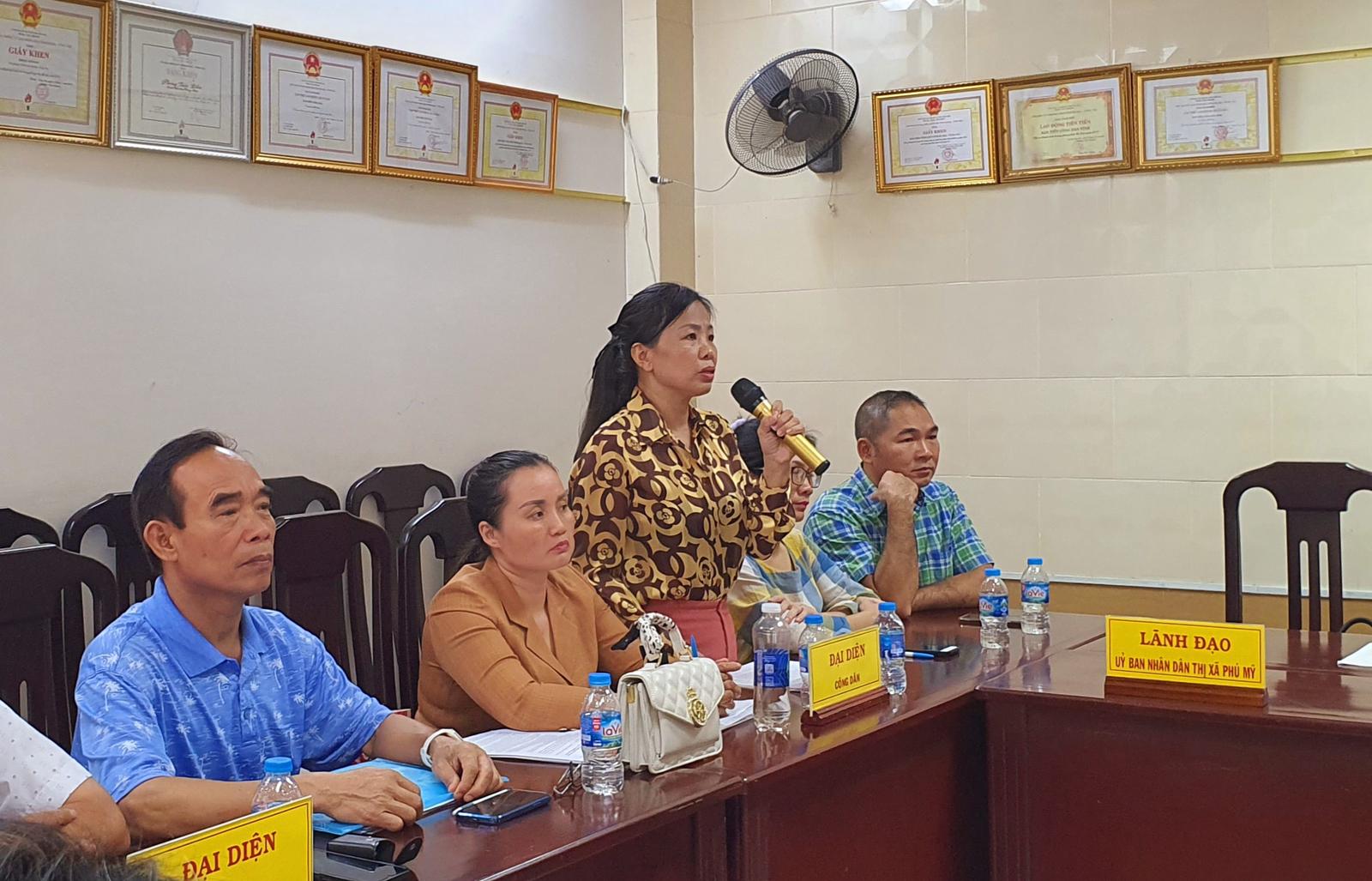 Người dân sống tại khu nhà ở Khang Linh, phường 10, TP Vũng Tàu phát biểu ý kiến tại buổi tiếp công dân. Ảnh: Chu Tuấn