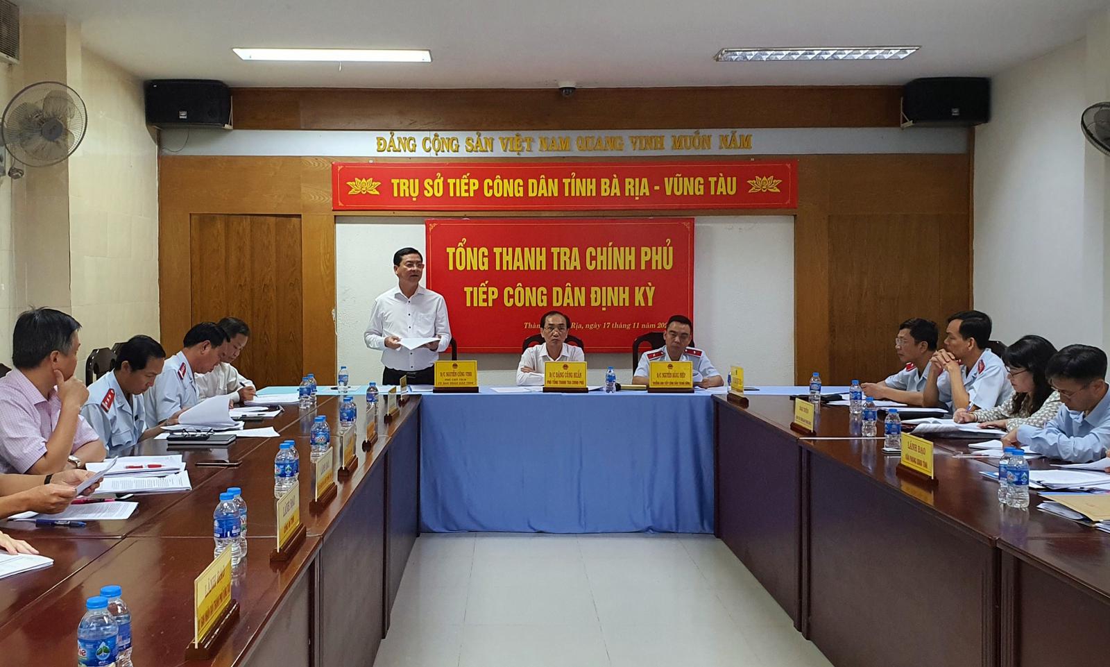 (Thanh tra) - Chiều ngày 17/11/2023, tại Trụ sở Tiếp công dân tỉnh Bà Rịa - Vũng Tàu (BR-VT), Phó Tổng Thanh tra Đặng Công Huẩn đã chủ trì, tiếp công dân định kỳ tháng 11 để xem xét một số vụ việc trên địa bàn tỉnh.