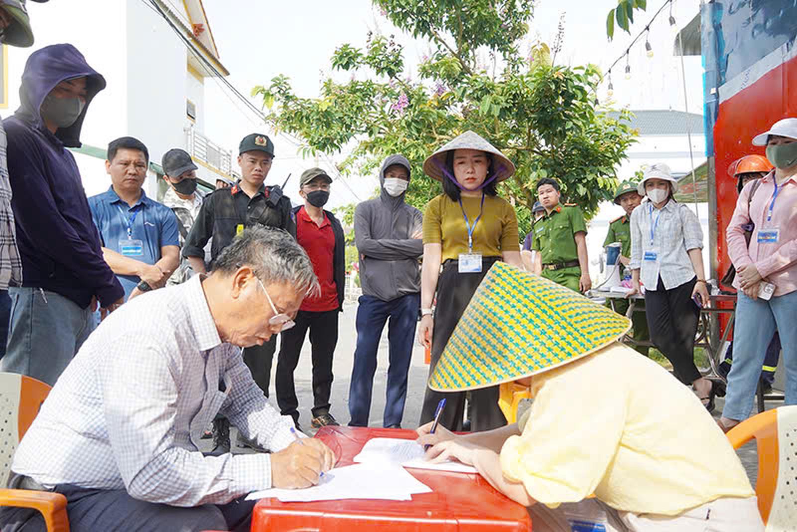 Ông Hoàng Duy Lộc ký xác nhận biên bản trước lúc cưỡng chế buộc thực hiện biện pháp khắc phục hậu quả. Ảnh: BQB