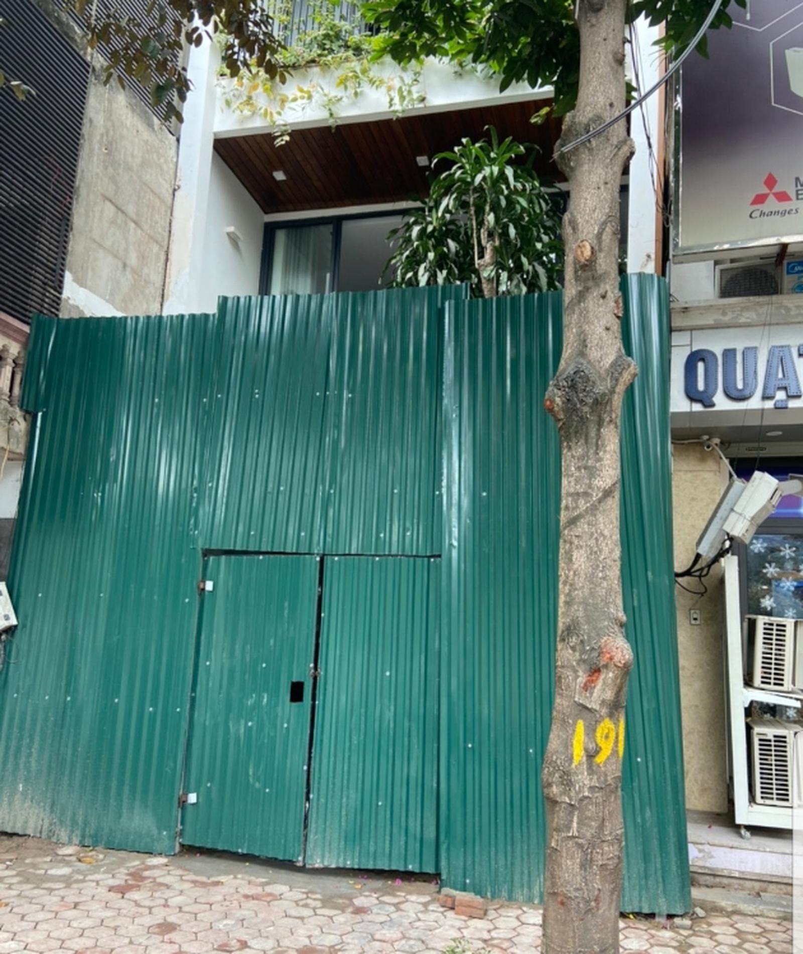 Sau cưỡng chế, chủ công trình 465 Kim Ngưu quây tôn, lấn chiếm vỉa hè như ban đầu. Ảnh: PV