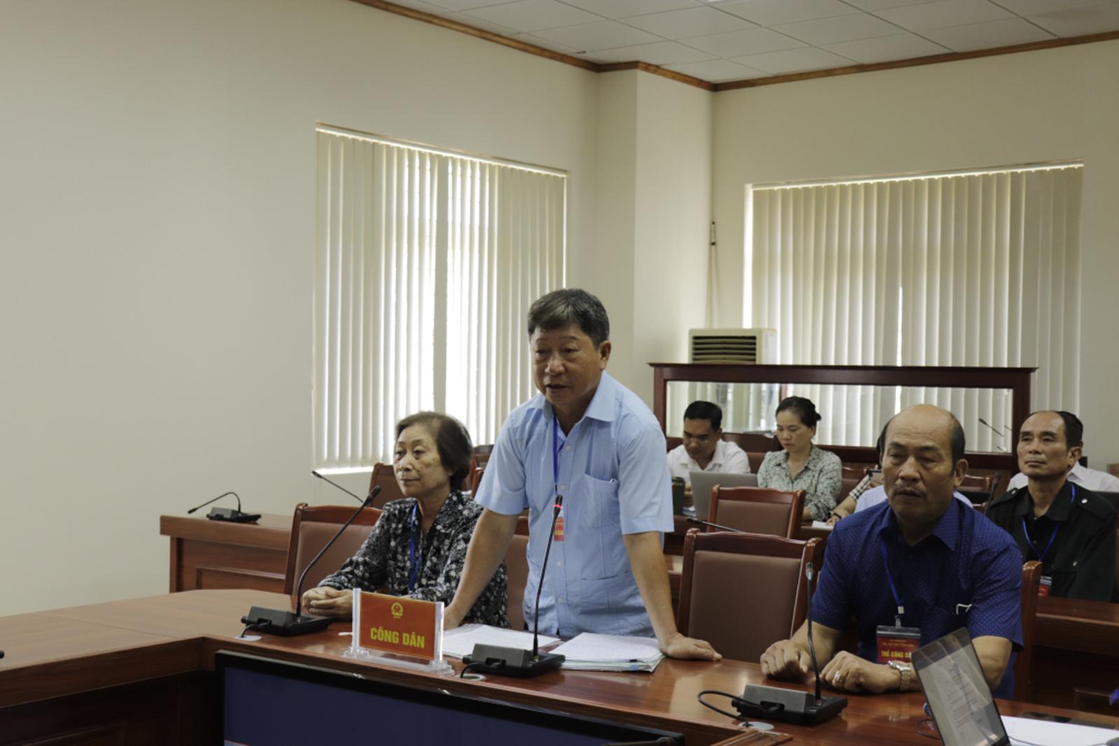 Đại diện hộ dân tổ 2, khu 7A, phường Hồng Hải, TP Hạ Long, trình bày nội dung kiến nghị đến Hội đồng Tiếp công dân tỉnh. Ảnh: TTTT