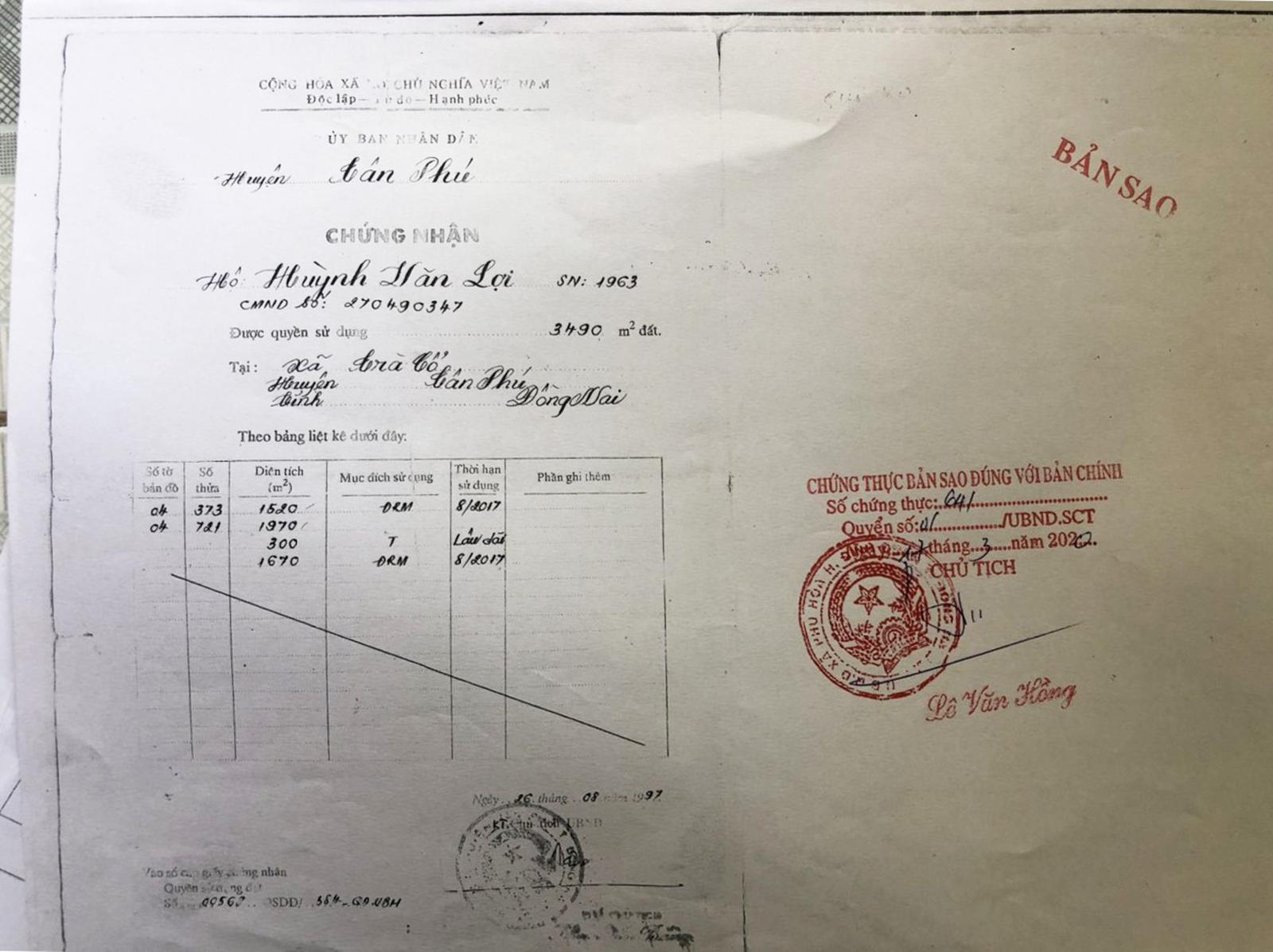 Sau khi không thể tiến hành thẩm định tại chỗ và đo đạc khu đất, ngày 19/1/2021, TAND huyện Tân Phú có Công văn số 20/CV-TAH gửi UBND tỉnh Đồng Nai đề nghị cung cấp các tài liệu, chứng cứ gồm toàn bộ hồ sơ thu hồi 305.952m2 đất tại xã Trà Cổ, huyện Tân Phú, theo Quyết định số 1318/QĐ.CT.UBT ngày 29/4/2002 của UBND tỉnh Đồng Nai.