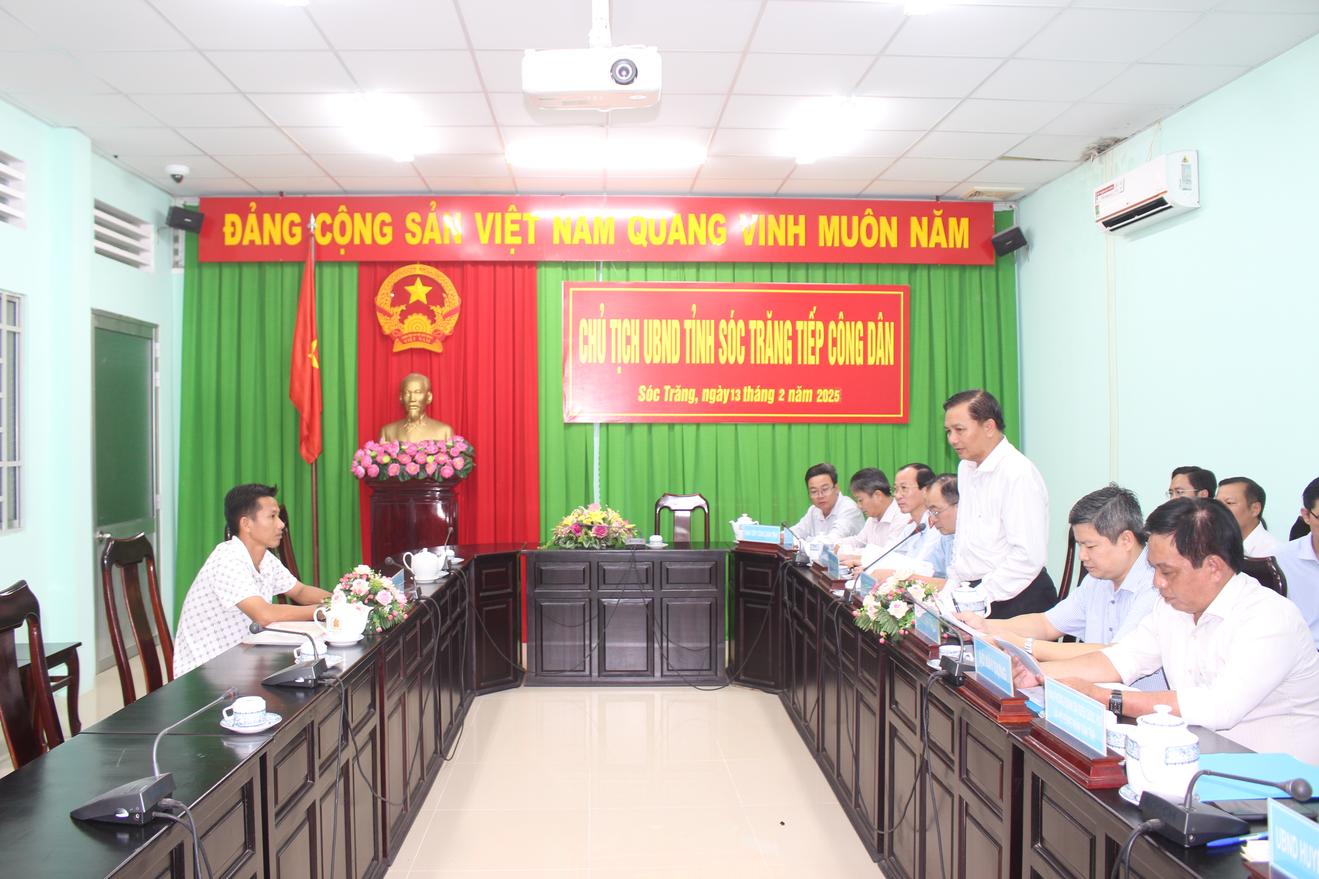 (Thanh tra) - Chiều ngày 13/2, tại Trụ sở Tiếp công dân tỉnh Sóc Trăng, Phó Bí thư Tỉnh ủy, Chủ tịch UBND tỉnh Trần Văn Lâu, chủ trì cuộc gặp gỡ, đối thoại với ông Lê Văn Cảnh, ngụ ấp Chợ, thị trấn Cù Lao Dung, huyện Cù Lao Dung (Sóc Trăng).