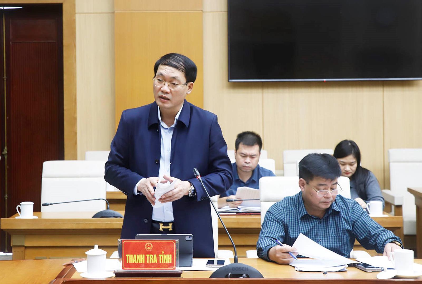Phó Chánh Thanh tra tỉnh Phạm Văn Quang báo cáo tình hình giải quyết các vụ việc khiếu nại, tố cáo đông người, phức tạp, kéo dài trên địa bàn tỉnh tại hội nghị được tổ chức gần đây. Ảnh: Thanh Hoà