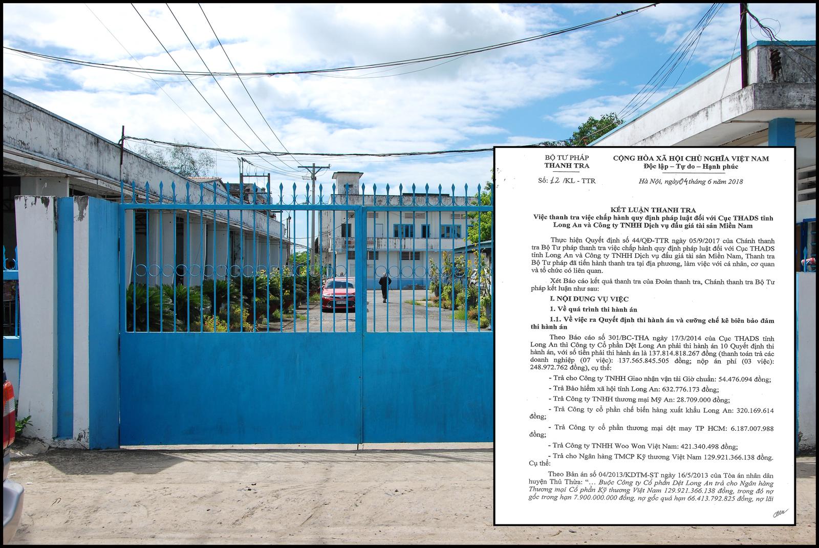 Thanh tra Bộ Tư pháp đã chỉ ra hàng loạt sai phạm, thậm chí có cả những sai phạm nghiêm trọng liên quan tới việc kê biên tài sản, thẩm định giá, bán đấu giá và giao tài sản của Cty Dệt Long An. (Ảnh: CT)