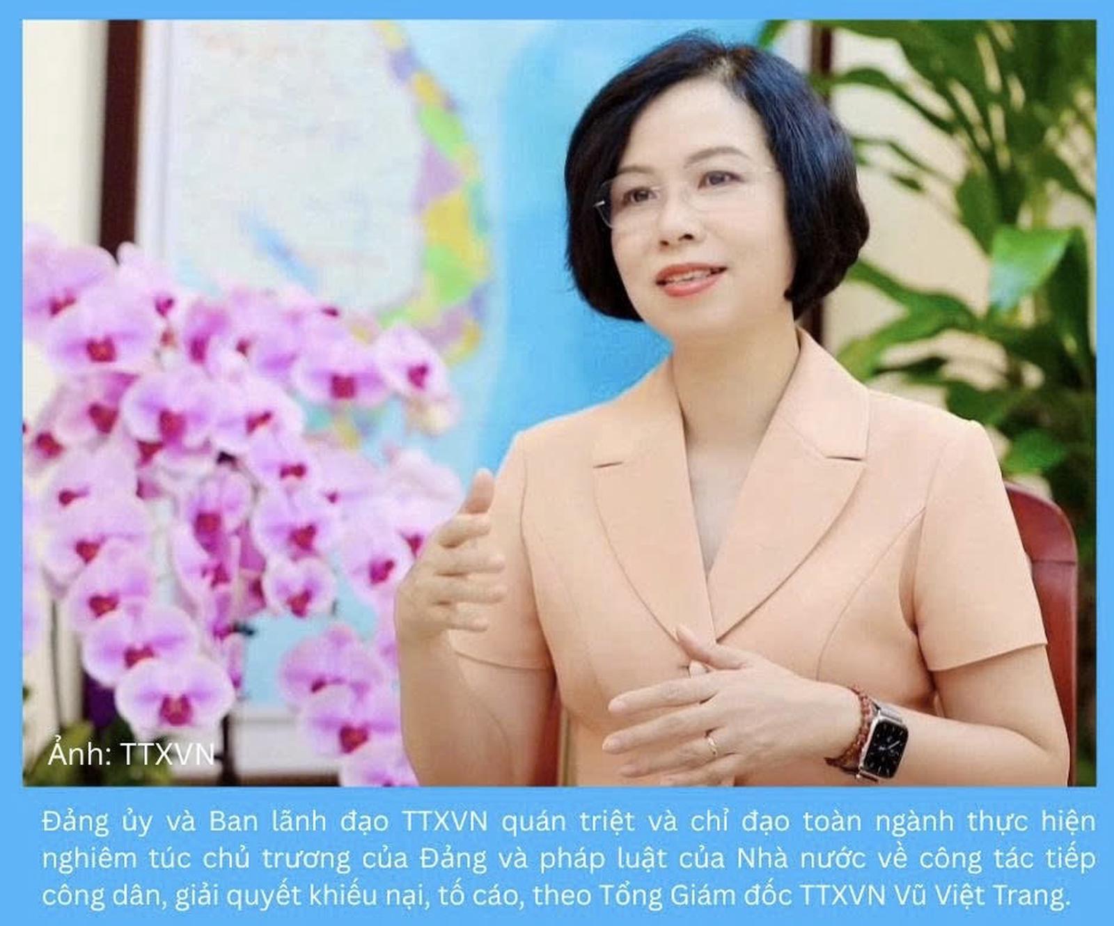 Cũng theo Tổng Giám đốc Vũ Việt Trang, TTXVN là cơ quan thuộc Chính phủ, thực hiện chức năng thông tấn quốc gia theo quy định tại Nghị định số 27 ngày 24/2/2025 của Chính phủ, TTXVN không có chức năng quản lý nhà nước nên không có thẩm quyền ban hành văn bản quy phạm pháp luật hướng dẫn về các nội dung liên quan đến thực hiện Luật Tiếp công dân, Luật Khiếu nại, Luật Tố cáo...