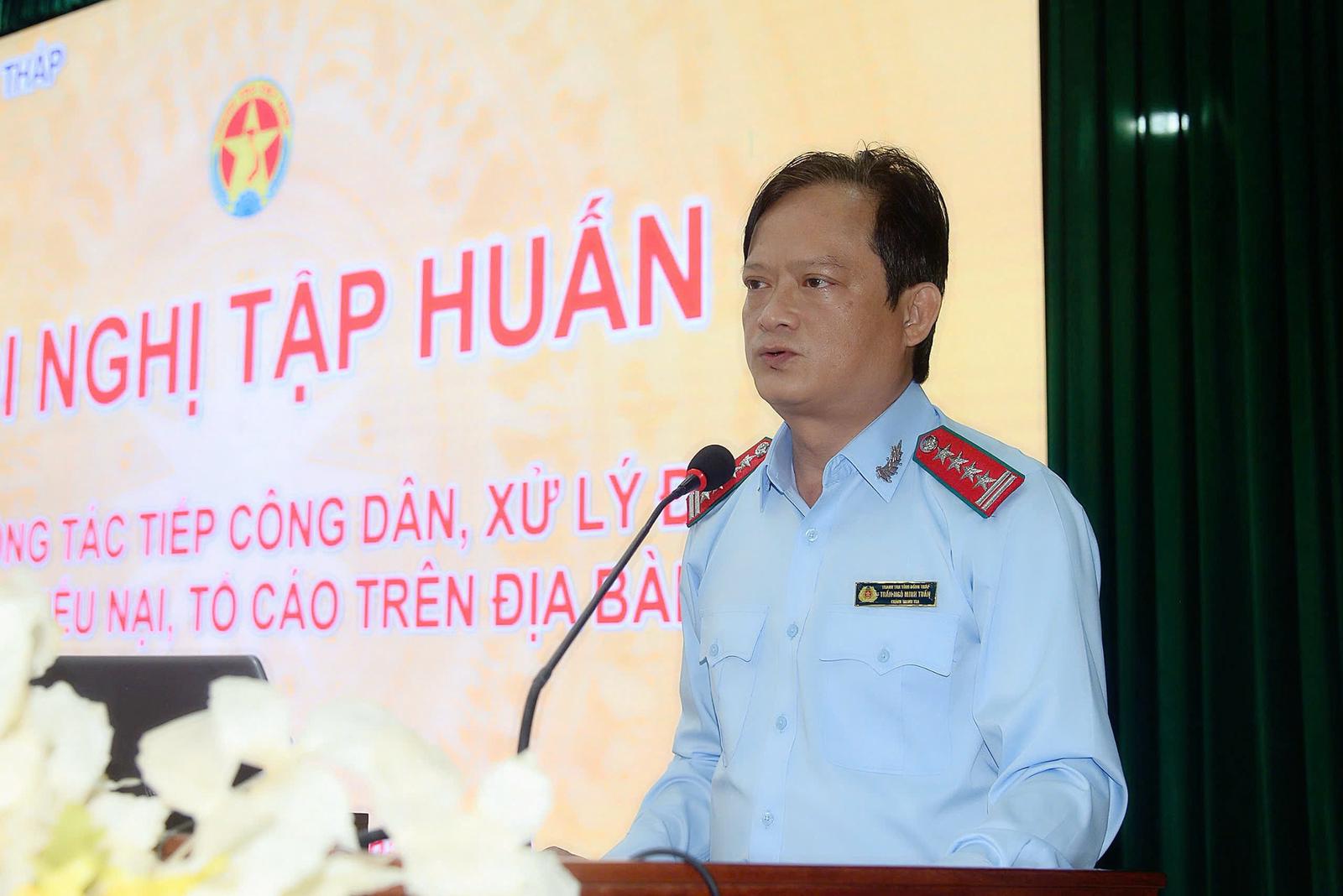 Phát biểu khai mạc lớp học, Chánh Thanh tra tỉnh Đồng Tháp Trần Ngô Minh Tuấn cho biết, thực hiện chủ trương sắp xếp, kiện toàn tổ chức bộ máy, sáp nhập đơn vị hành chính theo chỉ đạo của Trung ương, tỉnh Đồng Tháp đã từng bước ổn định tổ chức, bộ máy và phương thức hoạt động của các cơ quan hành chính Nhà nước. Trong bối cảnh đó, công tác tiếp công dân, xử lý đơn, giải quyết KN, TC tiếp tục được Tỉnh ủy, UBND tỉnh quan tâm lãnh đạo, chỉ đạo chặt chẽ, xác định là nhiệm vụ chính trị quan trọng, trực tiếp liên quan đến quyền và lợi ích hợp pháp của Nhân dân. Thực hiện tốt công tác tiếp công dân, xử lý đơn, giải quyết KN, TC sẽ góp phần bảo đảm quyền và lợi ích hợp pháp của công dân, giữ vững ổn định chính trị, trật tự an toàn xã hội và tăng cường niềm tin của Nhân dân đối với chính quyền.