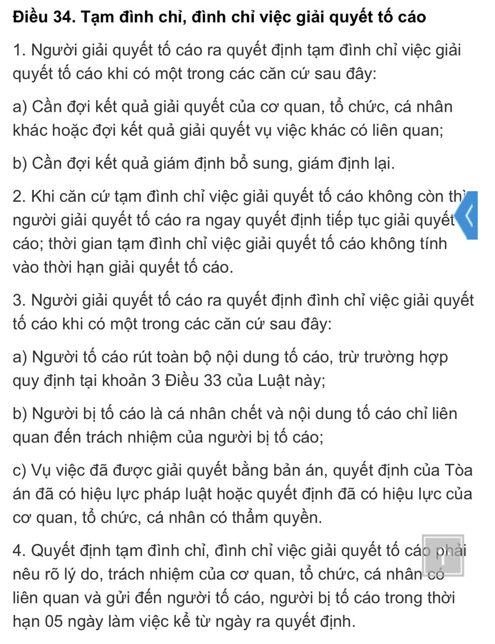 Tạm dừng giải quyết theo Điều 34 Luật Tố cáo