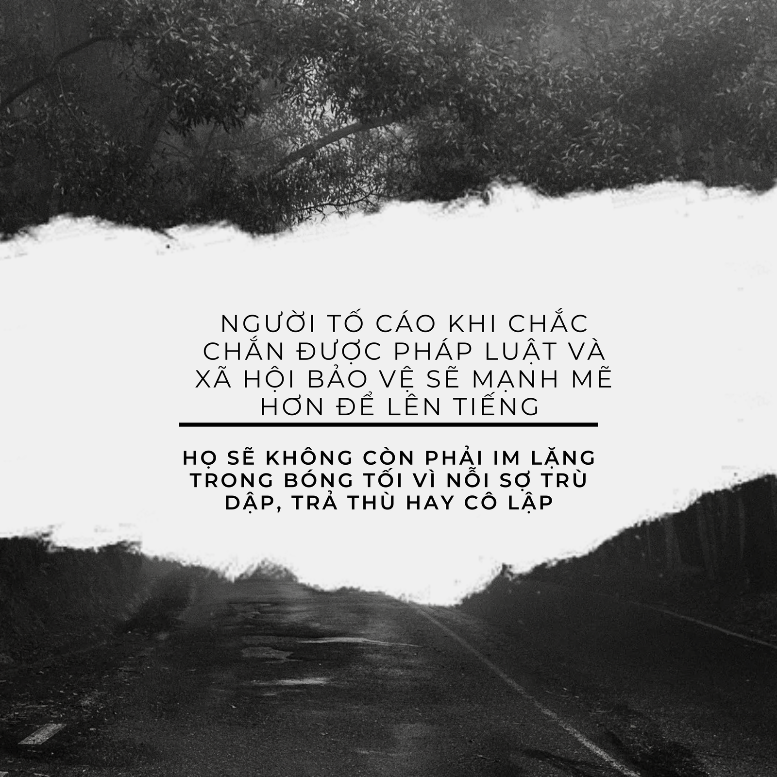 “Chắc chắn, khi biết mình được pháp luật và xã hội bảo vệ, người tố cáo sẽ mạnh mẽ hơn để lên tiếng. Họ sẽ không còn phải im lặng trong bóng tối vì nỗi sợ trù dập, trả thù hay cô lập”, luật sư Kiên khẳng định.