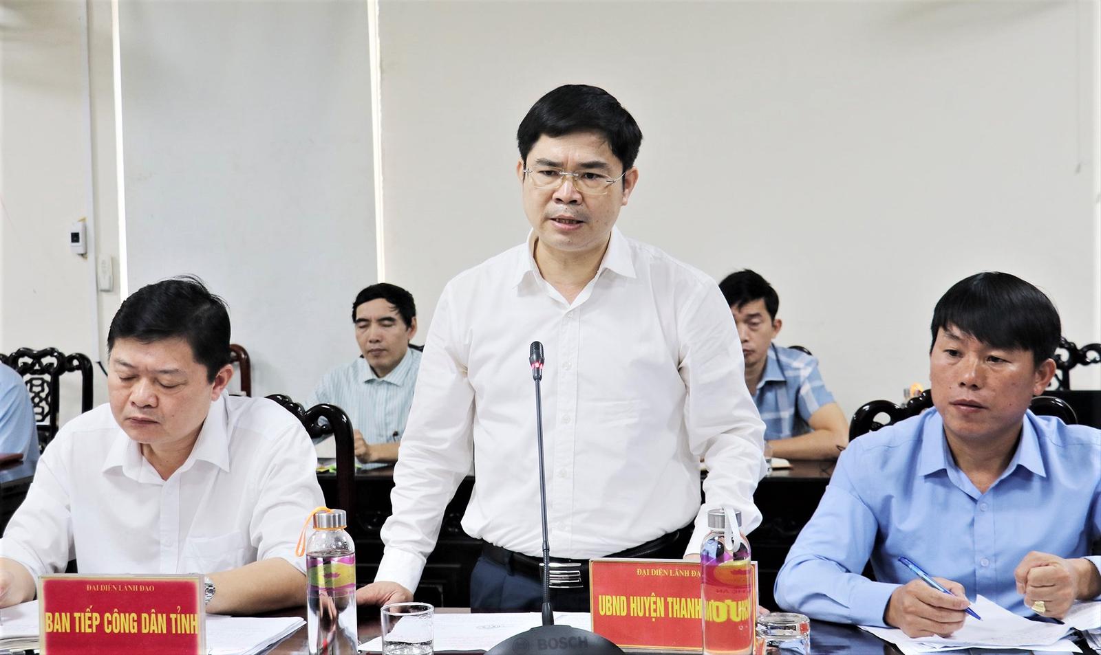 Chủ tịch UBND huyện Thanh Chương Trình Văn Nhã giải trình các vấn đề liên quan địa phương tại buổi TCD tỉnh tháng 3/2024 của Chủ tịch UBND tỉnh. Ảnh: Đức Anh
