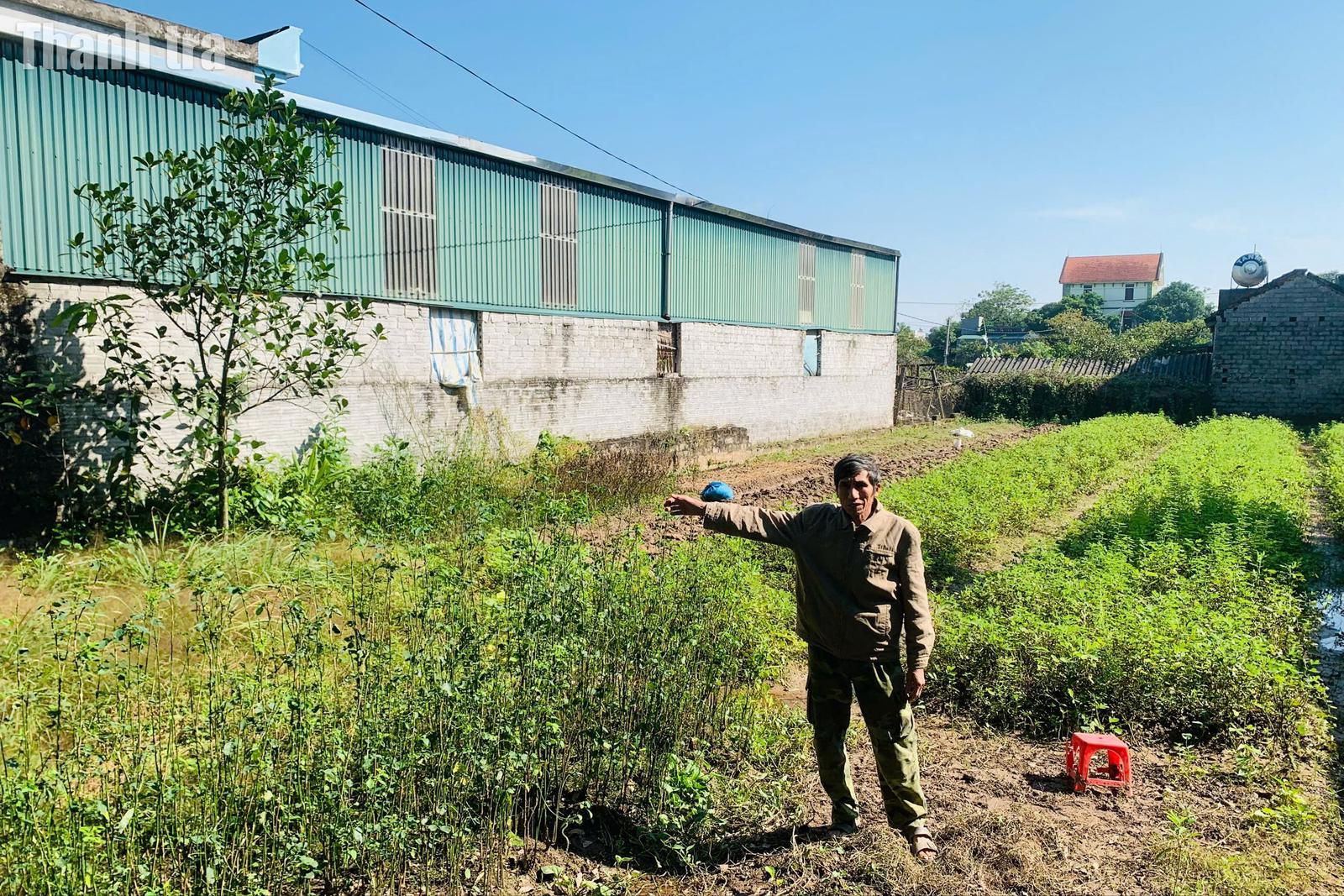 Hiện trạng thửa đất này hiện chỉ còn lại 442m2 do ông Tú quản lý, sử dụng đúng mục đích (trồng màu), số diện tích còn lại đã được các hộ xây dựng nhà xưởng? Ảnh: TQ