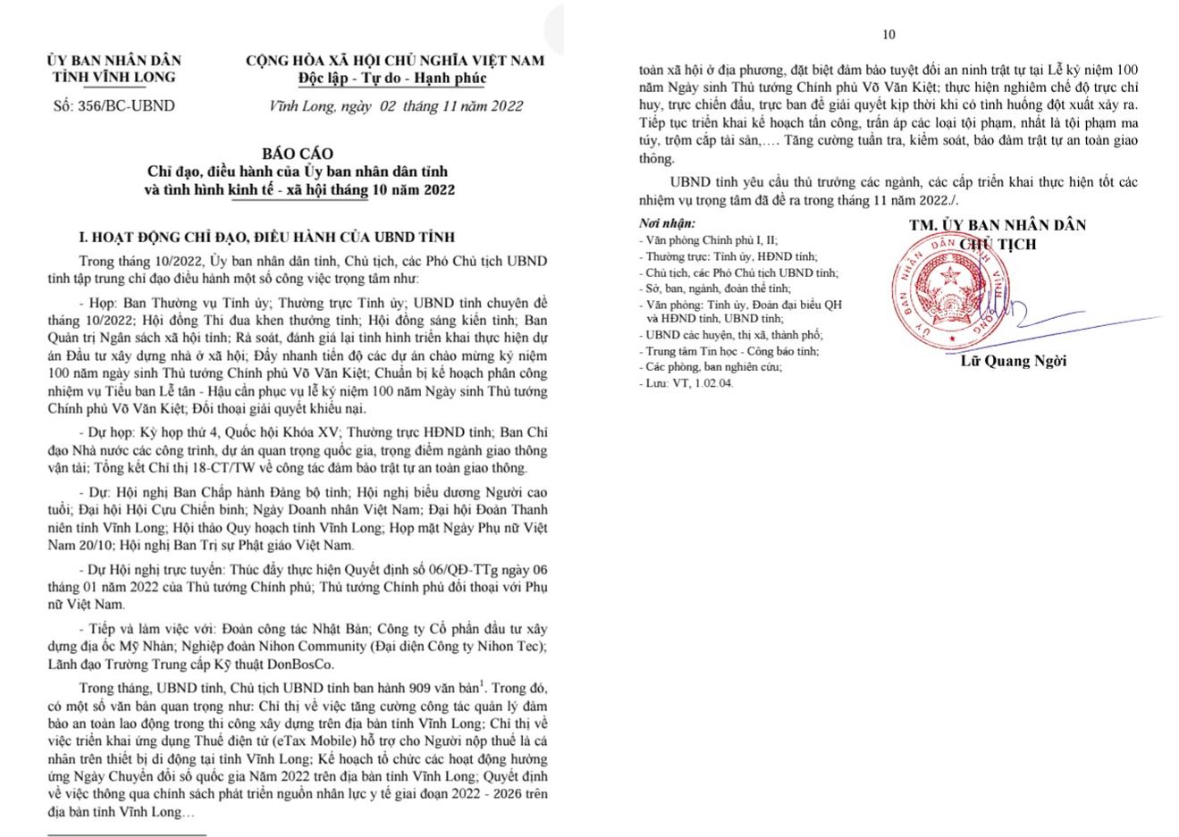 Báo cáo của UBND tỉnh Vĩnh Long. Ảnh: Ngân Nga