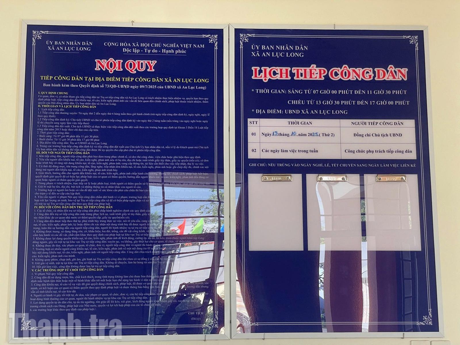 Nội quy và lịch tiếp công dân được UBND xã An Lục Long, tỉnh Tây Ninh công khai tại trụ sở. Ảnh: Thu Huyền