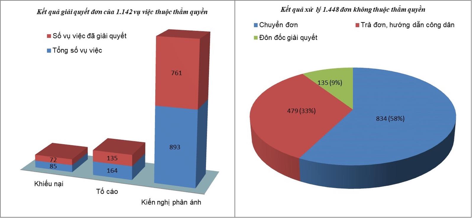 Biểu đồ số liệu kết quả xử lý đơn thư năm 2023 của Thanh tra BQP. Đồ họa: Hoàng Nam