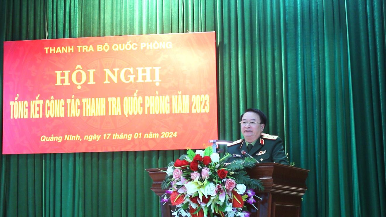 Ông Lê Đình Thương, Chánh Thanh tra Bộ Quốc phòng phát biểu đánh giá về công tác thanh tra, phòng chống tham nhũng, tiêu cực của ngành Thanh tra Quốc phòng năm 2023. Ảnh: Hoàng Nam