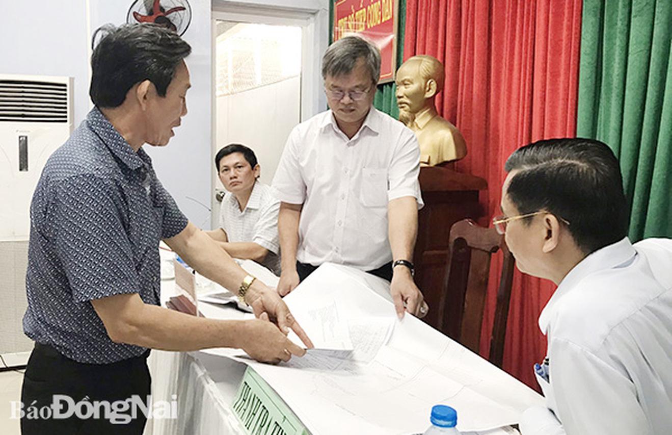 Chủ tịch UBND tỉnh Cao Tiến Dũng (thứ 2 từ phải qua) lắng nghe đại diện người dân khu phố Tân Cang, phường Phước Tân, TP Biên Hòa trình bày, tháng 10/2019. Ảnh: Kim Liễu/Báo Đồng Nai