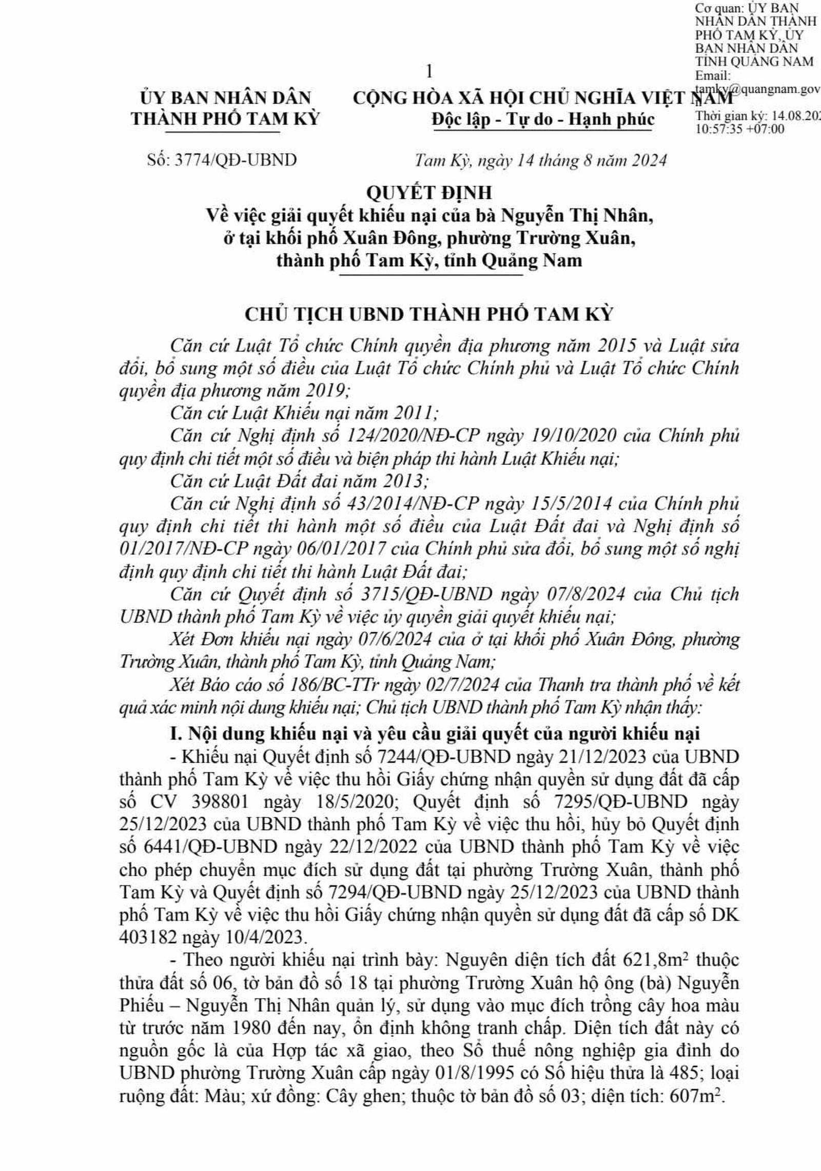 Qua kết quả xác minh và đối thoại của các cơ quan có thẩm quyền, Chủ tịch UBND thành phố Tam Kỳ xét thấy: