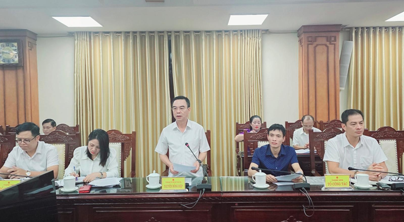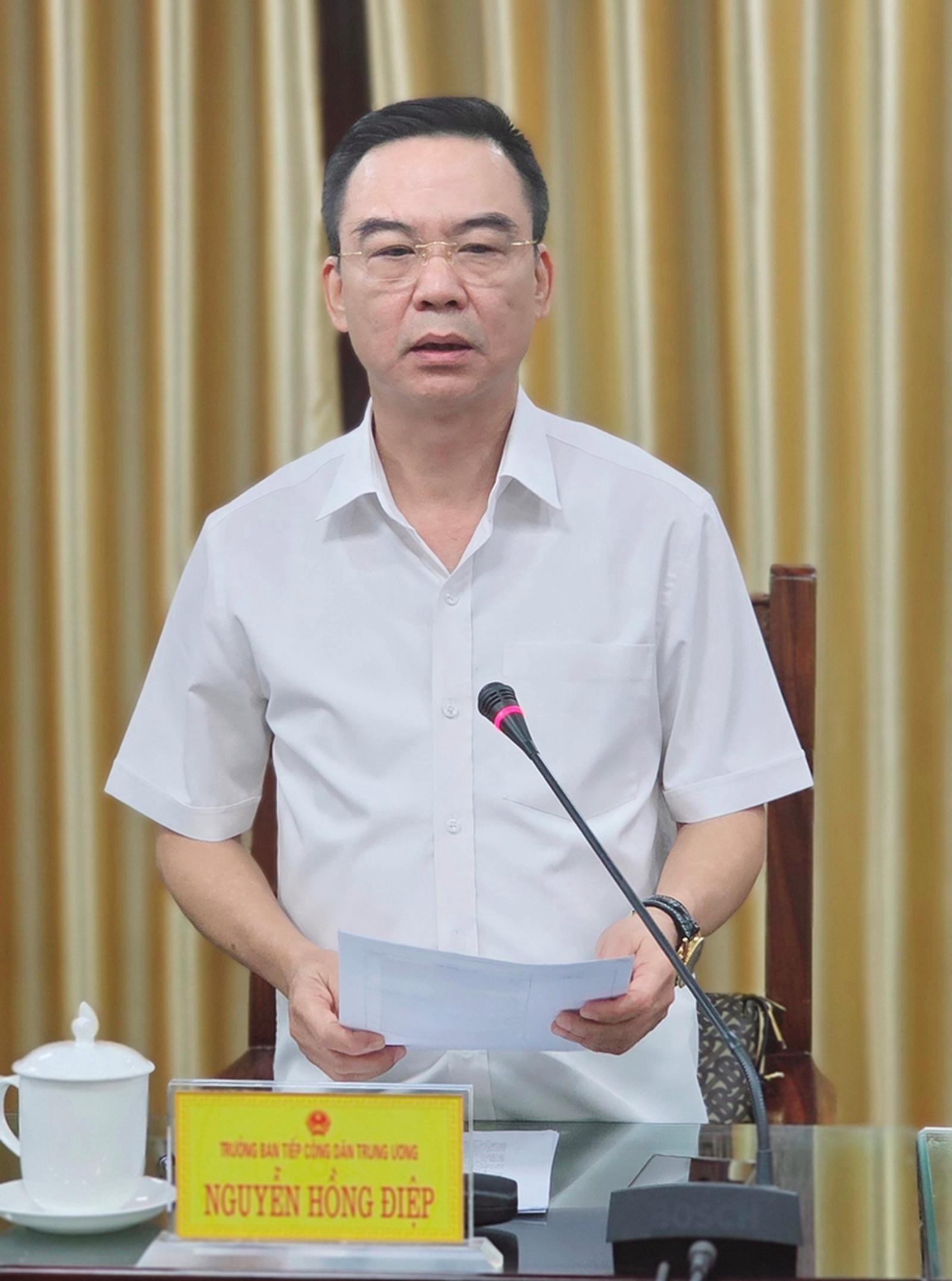 Tổ trưởng Tổ công tác, Trưởng ban TCDTƯ Nguyễn Hồng Điệp phát biểu tại buổi làm việc. Ảnh: TH