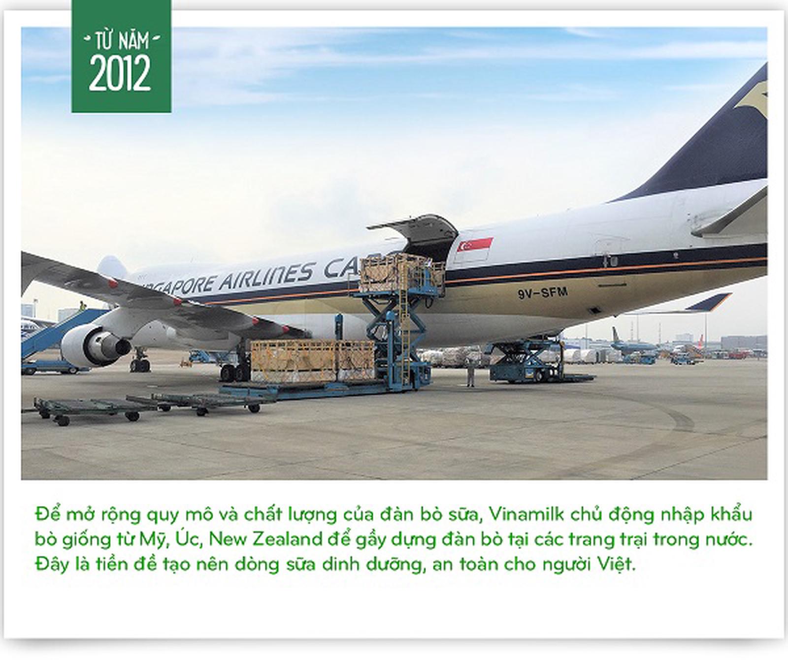 Trên đà thành công tại trang trại bò sữa Tuyên Quang, từ 2008-2012, Vinamilk liên tiếp xây dựng những trang trại bò sữa tại các tỉnh Bình Định, Nghệ An, Thanh Hoá, Đà Lạt. Tiếp đó, Vinamilk liên tiếp nhập khẩu những giống bò sữa chất lượng nhất thế giới từ Mỹ, New Zealand, Úc về các trang trại tại Việt Nam.
