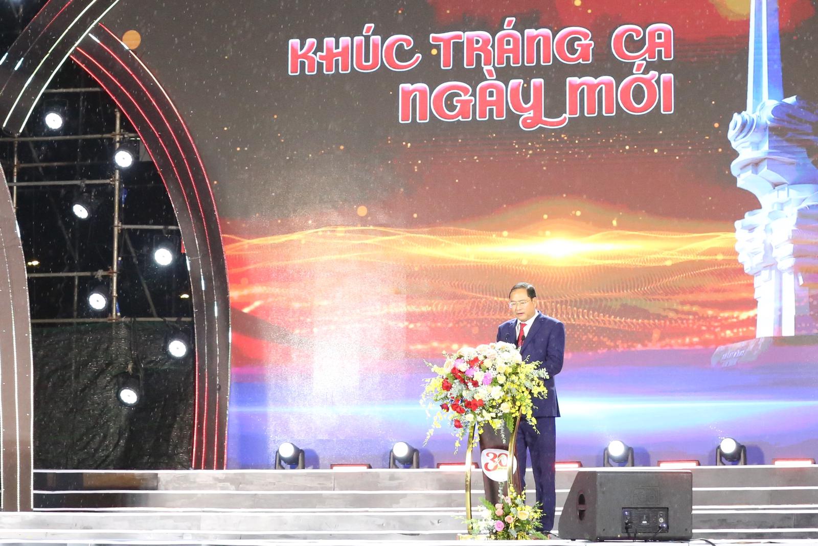 Chủ tịch UBND huyện Châu Đức, Nguyễn Tấn Bản phát biểu tại buổi lễ đón nhận Huân chương Lao động hạng Nhất vào ngày 09/8/2024. Ảnh: A.X