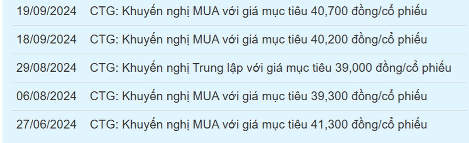 Khuyến nghị mua cổ phiếu CTG trong vài tháng qua của các công ty chứng khoán