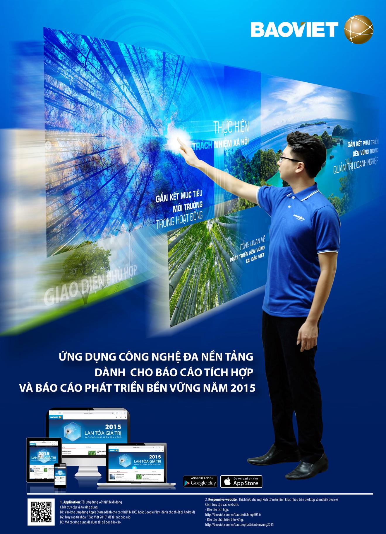 Nếu như Báo cáo Thường niên và Báo cáo Phát triển bền vững năm 2014 được Bảo Việt phát triển trên các ứng dụng chạy trên các thiết bị di động (apple store, google play) thì Báo cáo năm 2015 được ứng dụng thêm công nghệ Responsive website (ứng dụng công nghệ tích hợp đa nền tảng) cho phép người đọc luôn có những trải nghiệm tốt nhất, hiển thị giao diện đẹp nhất khi xem báo cáo trên website bất kể người đọc đang dùng thiết bị nào.