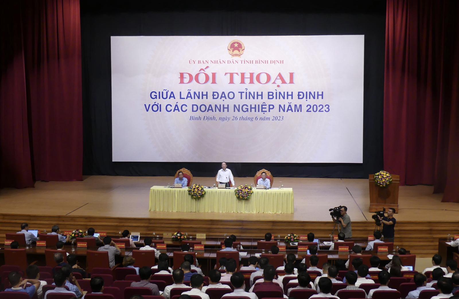 (Thanh tra) - Ngày 26/6, UBND tỉnh Bình Định tổ chức buổi đối thoại giữa lãnh đạo tỉnh với các doanh nghiệp. Tham dự buổi đối thoại có ông Phạm Anh Tuấn - Chủ tịch UBND tỉnh; các Phó Chủ tịch UBND tỉnh: Nguyễn Tuấn Thanh, Nguyễn Tự Công Hoàng, cùng các lãnh đạo sở, ngành và doanh nghiệp trên địa bàn.