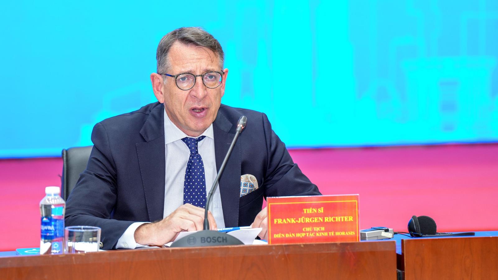 Tiến sĩ Frank - Jürgen Richter, Chủ tịch Horasis phát biểu tại họp báo. Ảnh: BTC