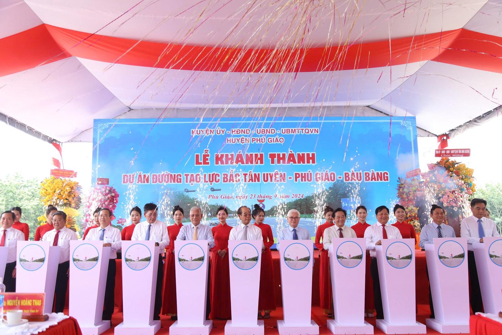 Cùng trong buổi sáng ngày 23/9/2024, dự án đường tạo lực Bắc Tân Uyên - Phú Giáo - Bàu Bàng cũng được khánh thành sau gần 3 năm xây dựng. Đây là một trong những dự án giao thông trọng điểm của tỉnh kết nối 3 địa phương quan trọng ở phía Bắc là huyện Bắc Tân Uyên, huyện Phú Giáo và huyện Bàu Bàng.