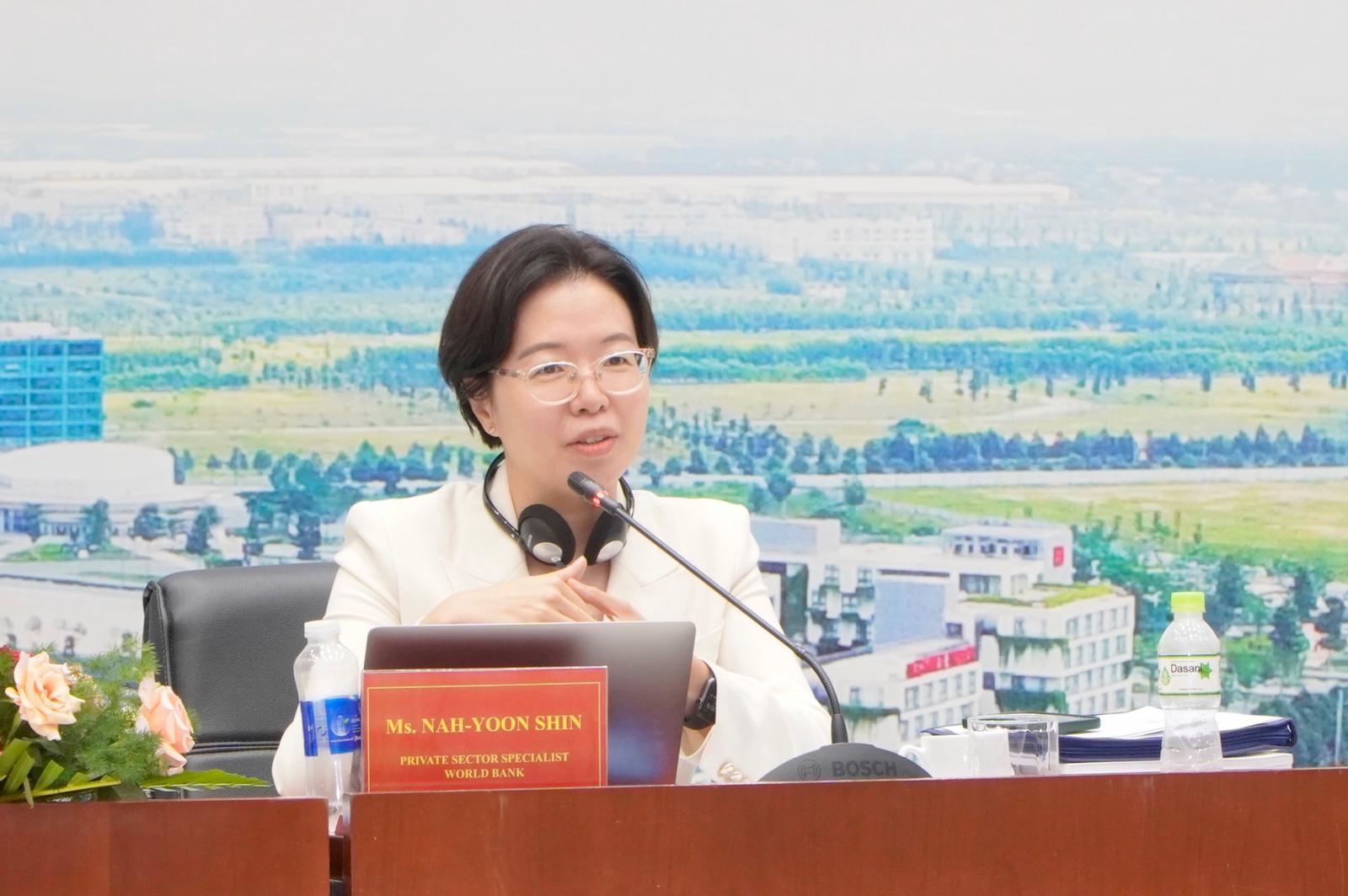 Bà Nah Yoon Shin - chuyên gia trong lĩnh vực tư nhân của Ngân hàng Thế giới thông tin về nghiên cứu KCN sinh thái của WB tại Bình Dương phát biểu tại hội thảo