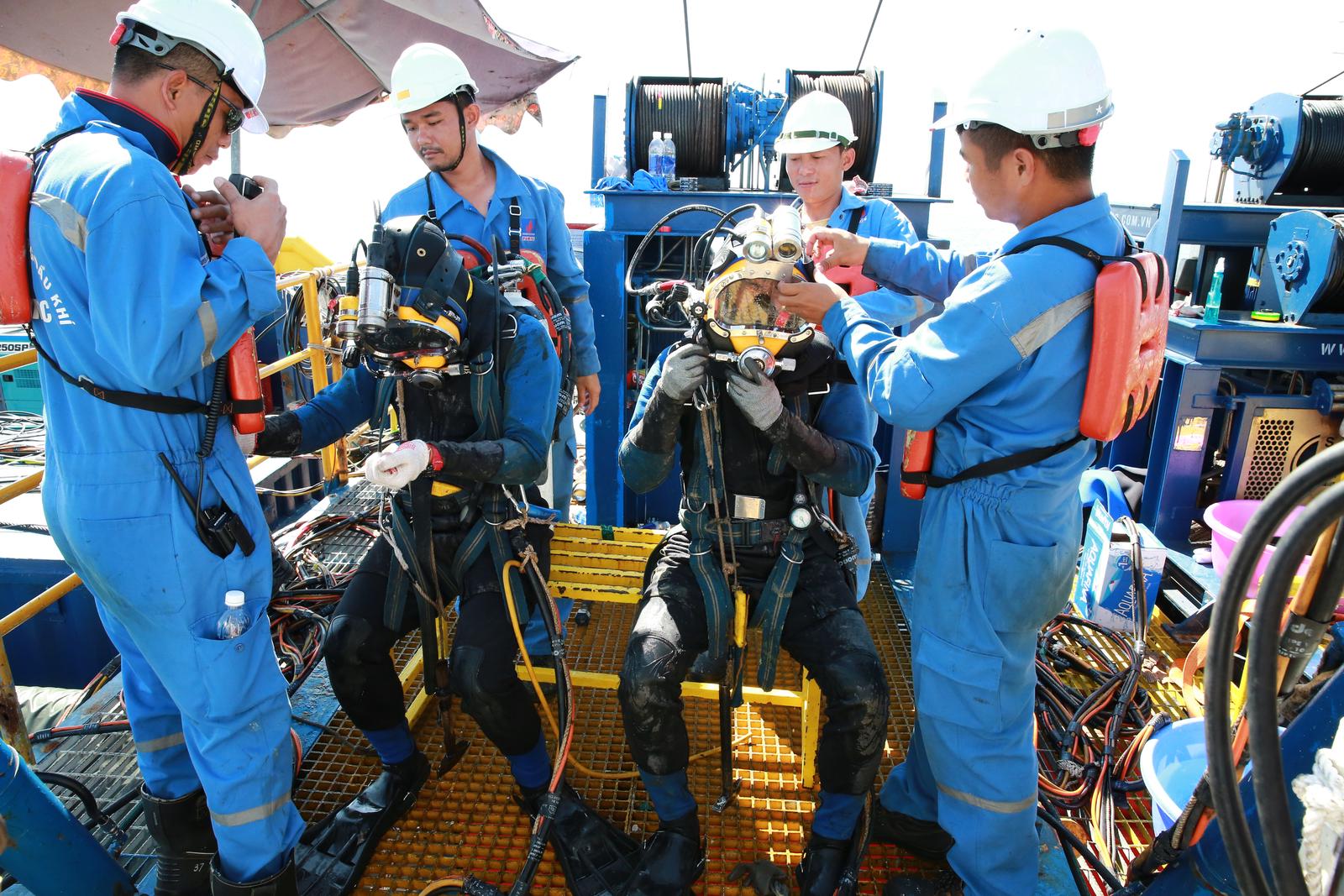 Thợ lặn chuẩn bị đồ nghề hiện đại, an toàn thực hiện bảo dưỡng phao SPM