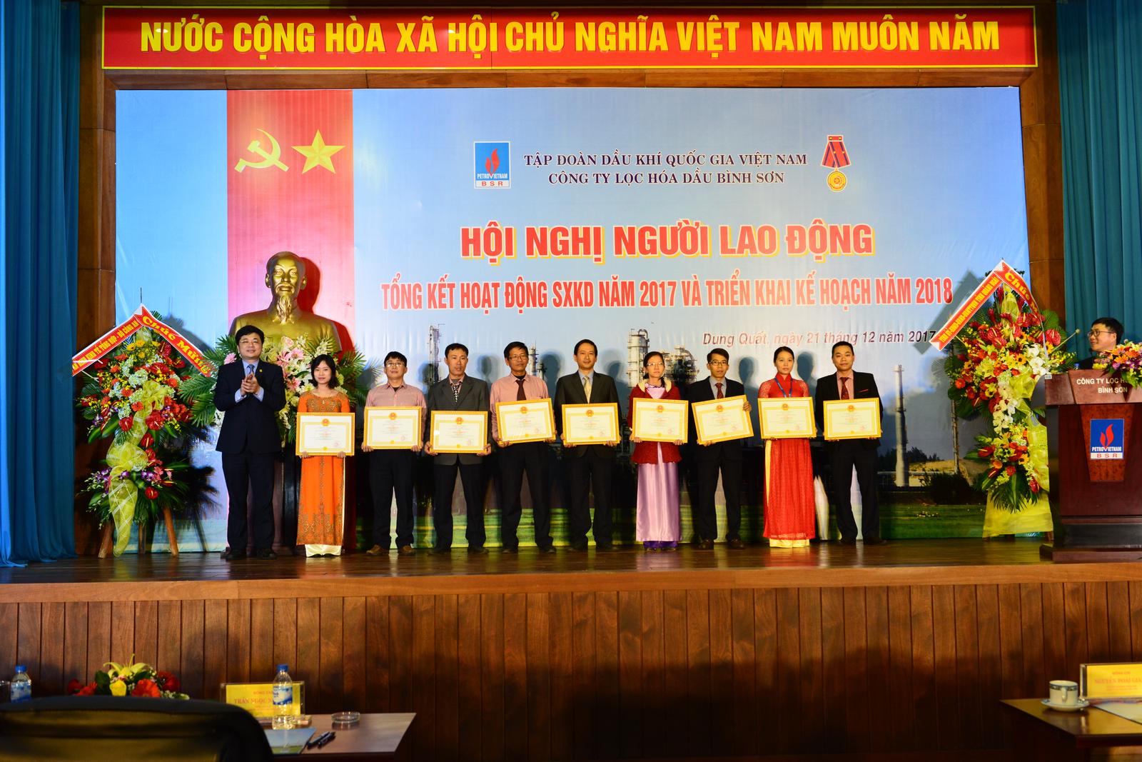 Tại hội nghị, các tập thể và cá nhân BSR đã nhận các phần thưởng cao quý như: Bằng khen UBND tỉnh Quảng Ngãi, Bằng khen Tổng Giám đốc PVN; Bằng khen Công đoàn Dầu khí Việt Nam, Giấy khen Tổng Giám đốc BSR…