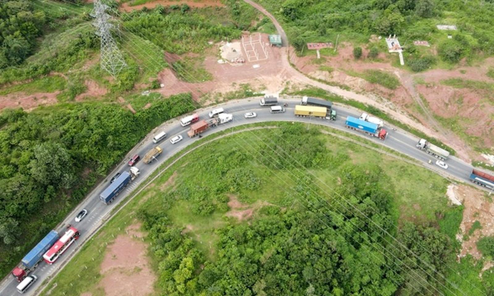 Lưu lượng hàng hóa trên tuyến Quốc lộ 9 qua Cửa khẩu Lao Bảo - Densavan ngày càng tăng. Ảnh: Minh Tân