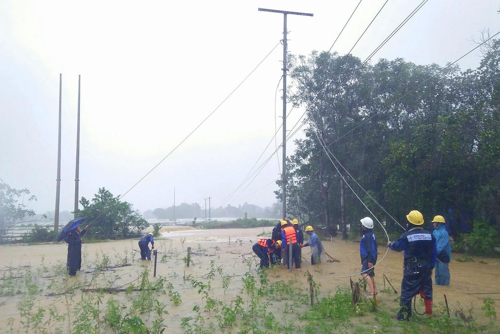Điện lực A lưới (Thừa Thiên Huế) sửa chữa lưới điện dưới trời mưa lũ