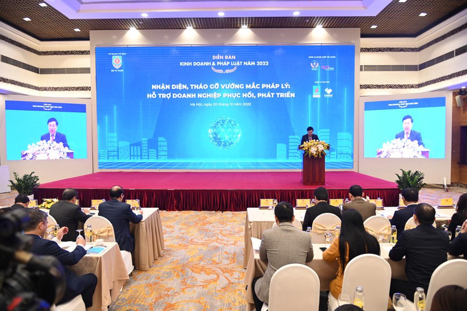 (Thanh tra)- Ngày 20/12, Bộ Tư pháp tổ chức Diễn đàn Kinh doanh và Pháp luật năm 2022 với chủ đề "Nhận diện, tháo gỡ vướng mắc pháp lý hỗ trợ doanh nghiệp phục hồi, phát triển". Phó Thủ tướng Chính phủ Phạm Bình Minh đến dự và chỉ đạo.