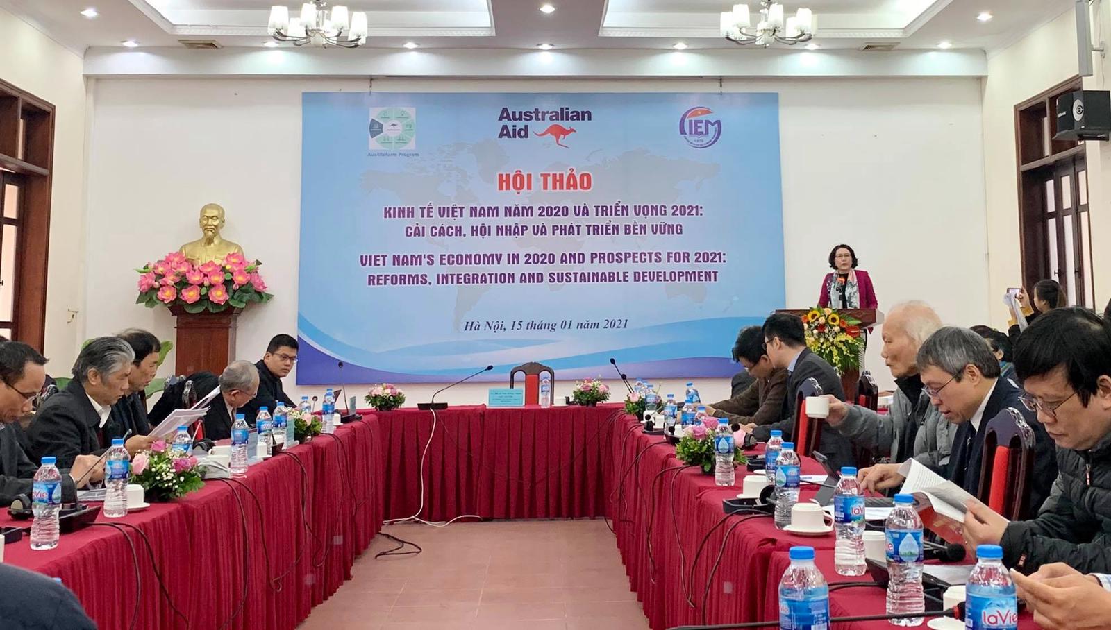 Ngày 15/1, Hội thảo “Kinh tế Việt Nam năm 2020 và triển vọng 2021: Cải cách, hội nhập và phát triển bền vững” do Viện Nghiên cứu Quản lý kinh tế Trung ương (CIEM) tổ chức với sự hỗ trợ của Chương trình Australia hỗ trợ cải cách kinh tế Việt Nam (Aus4Reform) đã diễn ra tại Hà Nội.