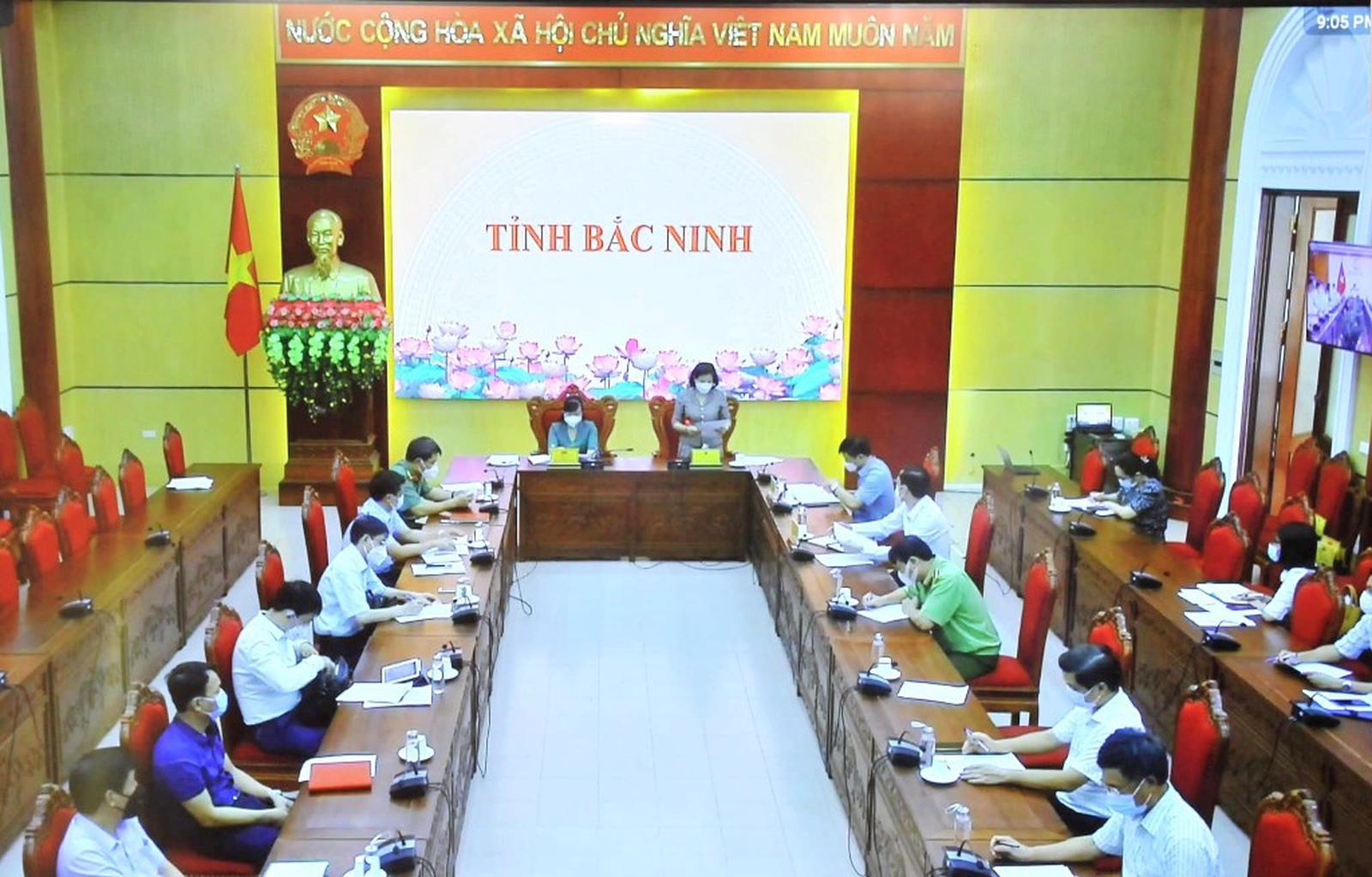 Toàn cảnh hội nghị trực tuyến tại đầu cầu Bắc Ninh. Ảnh: MK