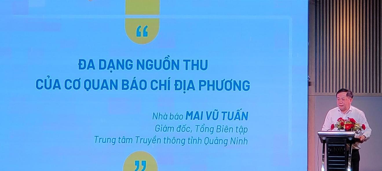 Ông Mai Vũ Tuấn, Giám đốc, Tổng Biên tập Trung tâm Truyền thông tỉnh Quảng Ninh phát biểu tham luận tại Diễn đàn Kinh tế báo chí 2023